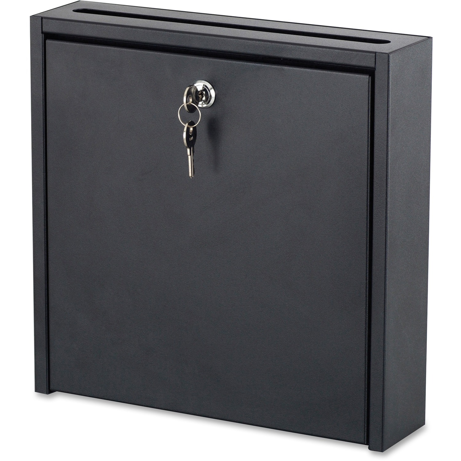 Small Interoffice Mailbox can be used for mail collections, drop box and secure office communication. Locking hinged door provides security for confidential messages. Drop slot measures 10-1/2" x 3/4" and accepts letter-size documents, envelopes, memos, discs, CD-ROMS, keys and more. Solid steel construction features a scratch-resistant, powder-coat finish for durability. Mailbox mounts to wall for easy, eye-level access to hinged drop-front door. Mailbox includes two keys and mounting hardware.